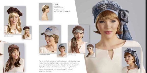 May I introduce you to what I call the "Sharrie" Sharrie is a beautiful inside and out, funny lady. She would tell me she never had so much attention from men as she did when she wore hers in a braid off to the side! If you were to look up the word "sparkle" I'm sure her picture would be there as the definition. Great option by Henry Margu called "Hair Accents" These hats actually are one of my absolute favorite ideas! And this is just one option! Hats with Hair! Not a full wig, but no one is the wiser! A great option that you can throw on when someone unexpectedly comes to the door, or you have to run out to the grocery store, picking the kids up from school. These are available (see below) as well as other awesome partial ideas that you can wear YOUR OWN hats with in the Boutique section. A must have for sure! These are offered in synthetic fibre
